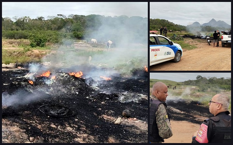 A operação foi deflagrada após uma denúncia de um morador, que alertou as autoridades sobre a queima de pneus em uma área pública na localidade do Âncora. A prática, além de ilegal, libera substâncias altamente tóxicas e prejudiciais à saúde e ao meio ambiente.