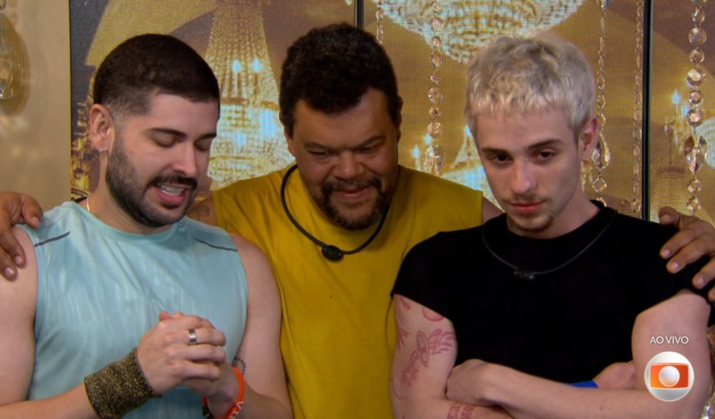 Marcelo, Babu Santana e Juliano Floss escolheram um brother para o paredão — Foto: Reproduçã...