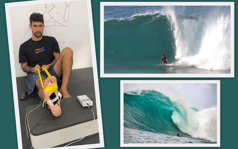 “Fiz um longo período de fisioterapia, sem poder colocar o pé no chão, depois comecei a fisioterapia com carga e logo em seguida a musculação com a minha esposa que é preparadora física, aí começaram os treinos na água, tenho surfado muito aqui na região onde cresci, minha recuperação foi praticamente toda na praia dos corais, em Unamar, distrito de Cabo Frio, mas tbm estou surfando em Rio das Ostras. Surfei alguns mares pesados esse ano, mas estou indo com calma e muito focado na musculação e nos exercícios de mobilidade fora d’água”, apontou.