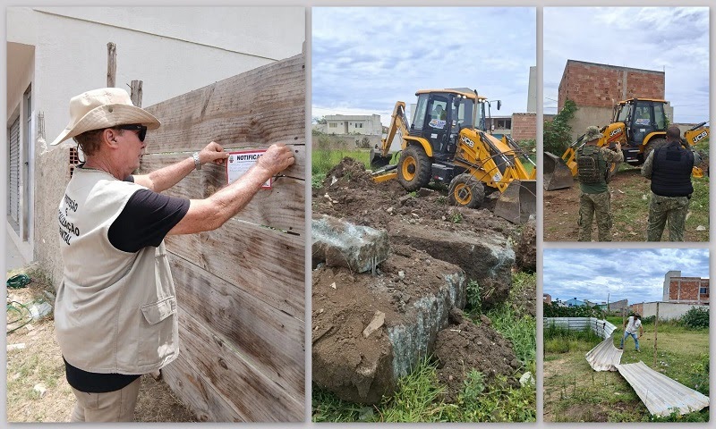 Ainda durante a operação, as equipes identificaram uma construção em fase inicial que já possuía sapatas executadas sem a emissão de alvará ou qualquer autorização prévia. O espaço estava delimitado por muros, mas os responsáveis não apresentaram qualquer comprovação de titularidade ou permissão para construir. Como resultado, foi determinada a paralisação imediata da obra. Os responsáveis foram notificados para suspender as atividades e apresentar a documentação necessária que comprove a legalidade da área murada e da construção, em conformidade com a legislação municipal vigente, sob pena de sanções.