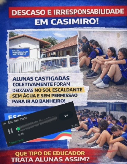 Um incidente recente na Escola Municipalizada Mataruna, em Casimiro de Abreu, está causando grande alvoroço entre pais e responsáveis. Relatos indicam que alunas da instituição foram submetidas a uma punição severa, onde teriam sido obrigadas a permanecer em pé no pátio da escola sob a exposição direta do sol durante a tarde. O episódio, que envolve restrições à hidratação e ao uso do banheiro, suscitou preocupações sobre os direitos e o bem-estar das crianças. O Conselho Tutelar local já foi acionado para investigar a situação e apurar as circunstâncias do que ocorreu.
