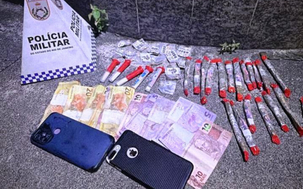 Durante a revista pessoal, um dos homens carregava dois celulares e dinheiro em espécie. Pouco depois, a colaboração da comunidade se mostrou fundamental: um morador se aproximou da equipe e informou que a dupla havia escondido entorpecentes nas imediações antes da abordagem.
