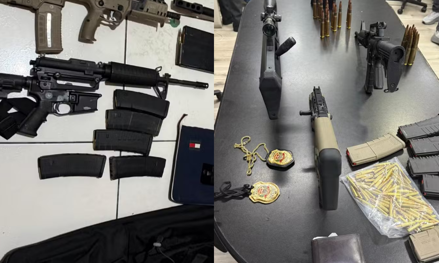 Em buscas no interior do imóvel, a polícia localizou um fuzil .50, capaz de derrubar aeronaves e perfurar veículos blindados, além de dois fuzis calibre 5.56, 80 munições 5.56 e 20 munições .50. As autoridades suspeitam que o grupo planejava uma ação de grande porte.