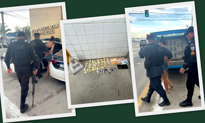 Dentro da bolsa da acusada, a polícia encontrou um farto material entorpecente pronto para a venda: