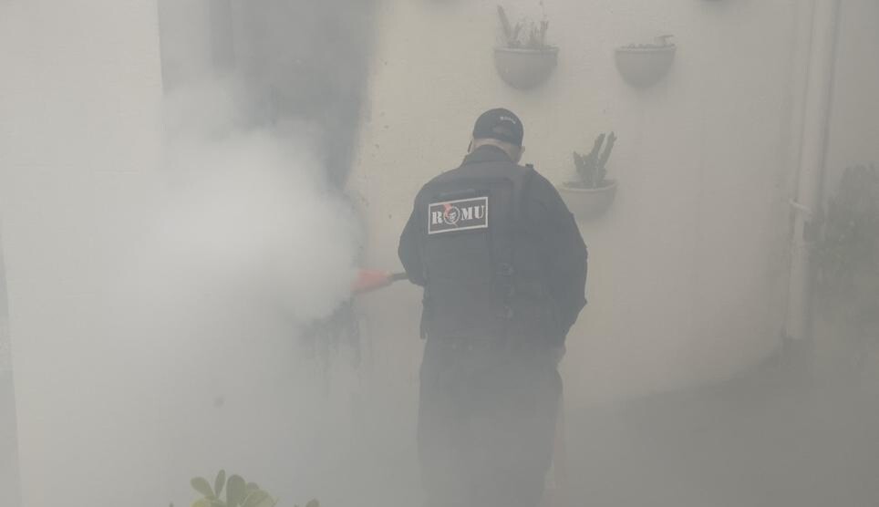Nesta quinta-feira (30), a equipe da Romu realizava uma patrulha de rotina quando avistou fumaça emanando de uma pousada localizada nas proximidades do teatro. A prontidão dos agentes permitiu uma intervenção imediata, evitando a propagação das chamas.