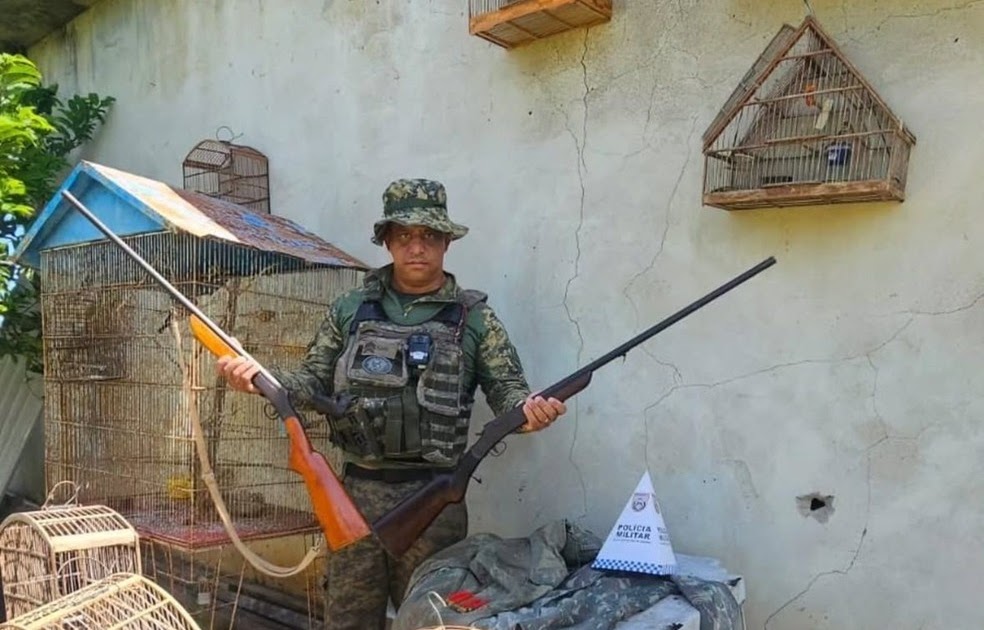 Paralelamente ao resgate das aves, os policiais apreenderam um volume considerável de armas de fogo e munições. A natureza e a quantidade desses itens indicam que a residência não era apenas um ponto de encontro, mas talvez também um local de armazenamento para equipamentos de caça de grande porte e poder de fogo. A posse ilegal de armas é um crime grave que coloca em risco a segurança da comunidade, além de ser uma ferramenta essencial para a prática da caça predatória e, frequentemente, para outras atividades criminosas. A apreensão desses materiais representa a interrupção de um elo importante na cadeia do crime organizado que se beneficia da exploração da fauna e da circulação de armamento ilegal. A ausência de registro ou porte legal para esses itens é uma infração direta à legislação vigente sobre controle de armas no país, sujeitando o infrator a pesadas penas.
