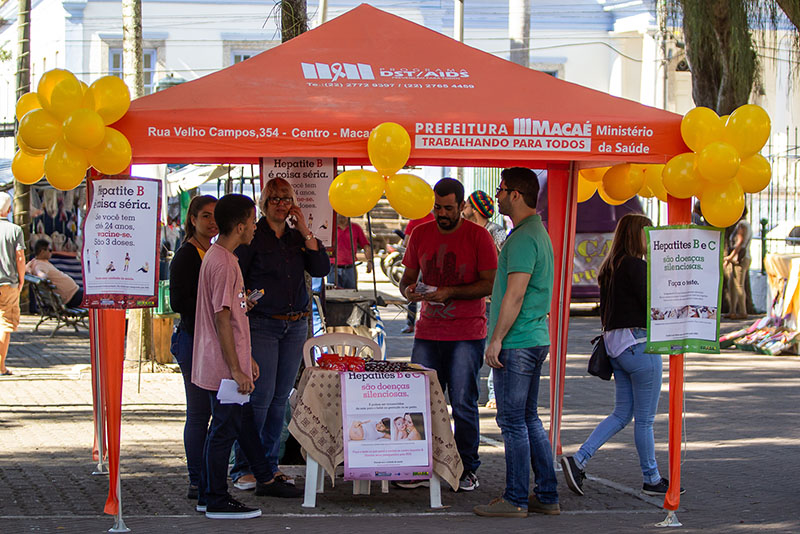 Ação de Conscientização sobre Hepatite Julho Amarelo, na Praça Veríssimo de Melo. Macaé/RJ. Data: 25/07/2019. Foto: Rui Porto Filho