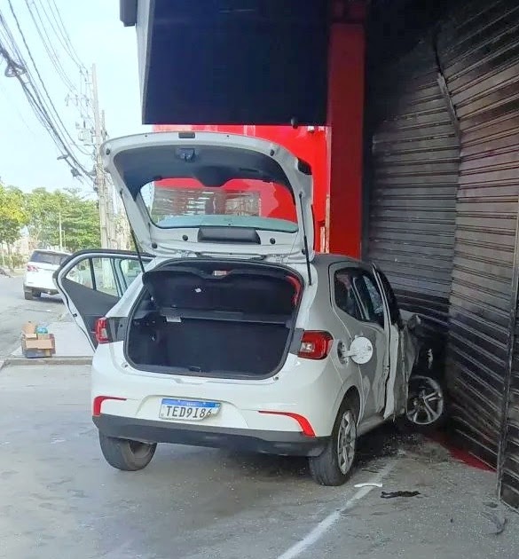 O acidente ocorreu quando o veículo, em circunstâncias ainda não totalmente esclarecidas, perdeu o controle e colidiu violentamente contra a porta de um estabelecimento comercial na movimentada Avenida Governador Roberto Silveira. A força do impacto resultou em danos significativos à fachada do prédio, assustando moradores próximos e comerciantes da área. A cena chamou a atenção pela audácia do motorista em abandonar o local após causar o acidente.