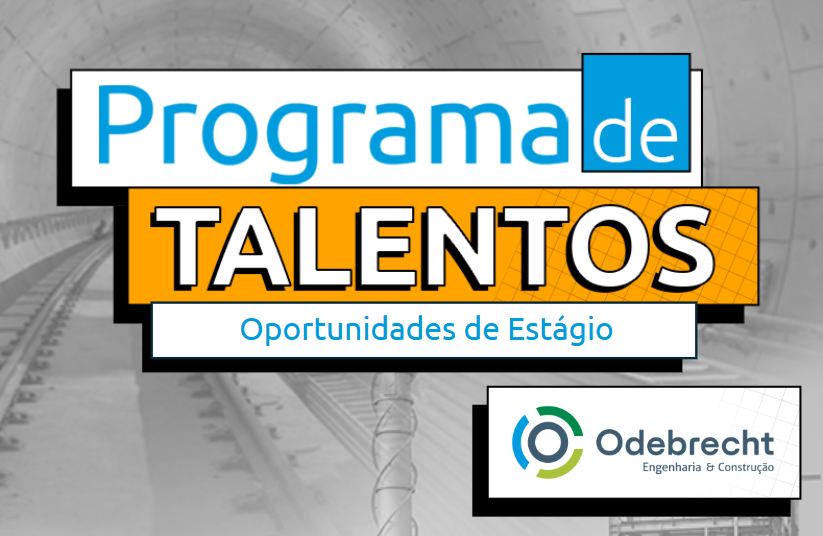 A Odebrecht Engenharia & Construção prorrogou, até 19 de novembro, as inscrições para as vagas de estágio no Programa de Talentos 2026. As oportunidades para trainee já estão preenchidas. Os selecionados irão atuar em obras e escritórios da construtora no Brasil. O programa tem por objetivo integrar estudantes através da experiência prática em projetos de grande porte executados pela empresa, incluindo plantas industriais, refinarias, obras de transporte, saneamento, dentre outros segmentos. Todo o processo seletivo será realizado virtualmente pelo site oficial do programa.