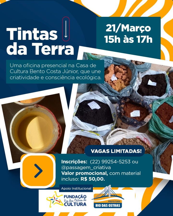 Estão abertas as inscrições para a oficina "Tintas da Terra", uma iniciativa que combina criatividade, técnicas ancestrais e consciência ecológica. Coordenada pelo artista plástico Higor Machado, a oficina ocorrerá no dia 21 de março, das 15h às 17h, na Casa de Cultura Bento Costa Júnior, uma das unidades da Fundação Rio das Ostras de Cultura. Esta atividade oferece uma oportunidade única para os participantes aprenderem a transformar solo e elementos naturais em pigmentos, promovendo uma forma de arte que respeita o meio ambiente e diminui a dependência de materiais sintéticos.
