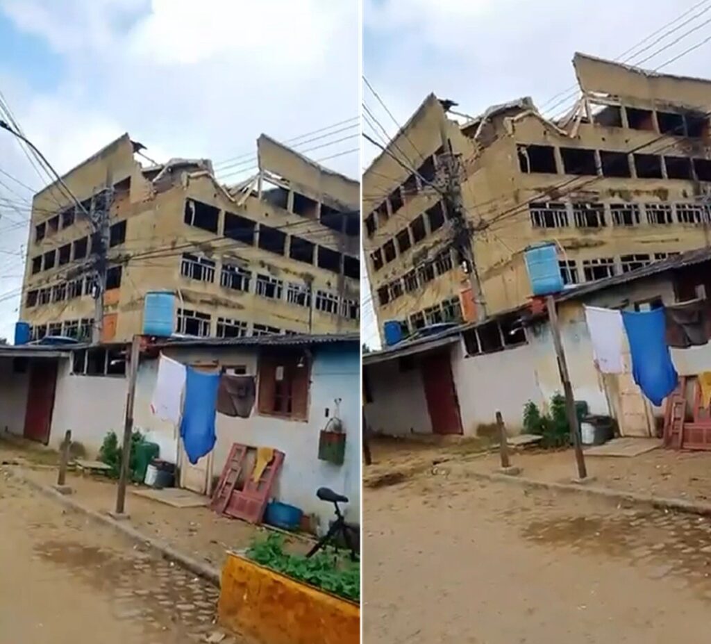Uma preocupação crescente tomou conta dos moradores do bairro Parque Leopoldina, em Campos dos Goytacazes, no Norte Fluminense, após um incidente alarmante envolvendo um prédio antigo da região. Parte da estrutura do imóvel cedeu, gerando um risco significativo de desabamento. A situação foi confirmada pela Defesa Civil local, que identificou um desabamento parcial na parte superior do edifício.