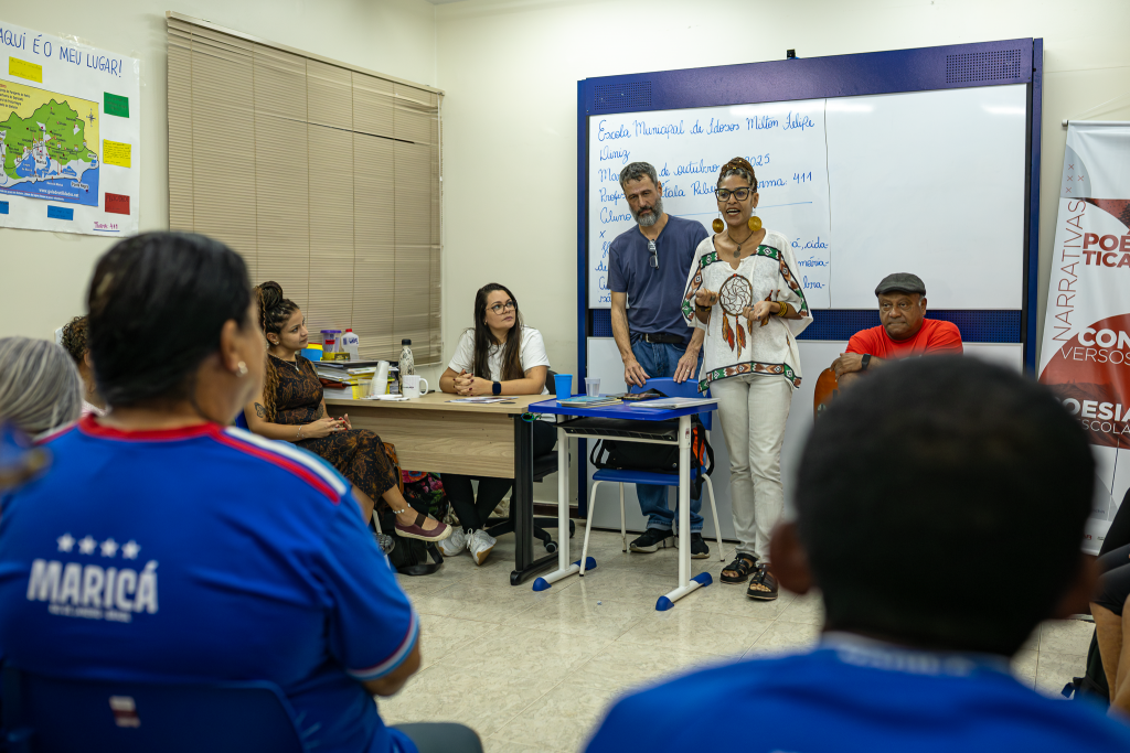 A Escola Municipal do Idoso Milton Felipe Diniz, localizada no centro de Maricá, foi palco da atividade “Poesia nas Escolas” nesta terça-feira, 28 de outubro. A iniciativa, promovida pela Prefeitura de Maricá através da Secretaria de Cultura e das Utopias, antecede o Festival de Poesia Rio de Versos, que acontecerá na cidade entre 30 de outubro e 2 de novembro.