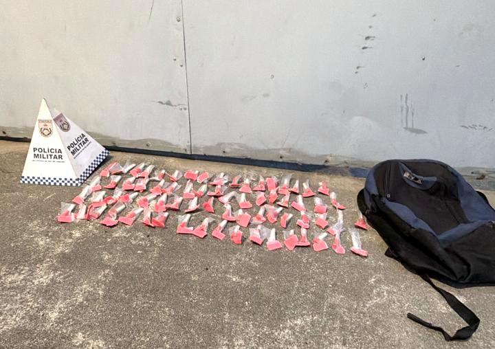 Diante da situação, os militares iniciaram buscas na área percorrida pelos indivíduos. Durante as diligências, encontraram uma mochila preta escondida, e ao verificar seu conteúdo, foi constatado que se tratava de farto material entorpecente, indicando possível ligação com o grupo que se evadiu.