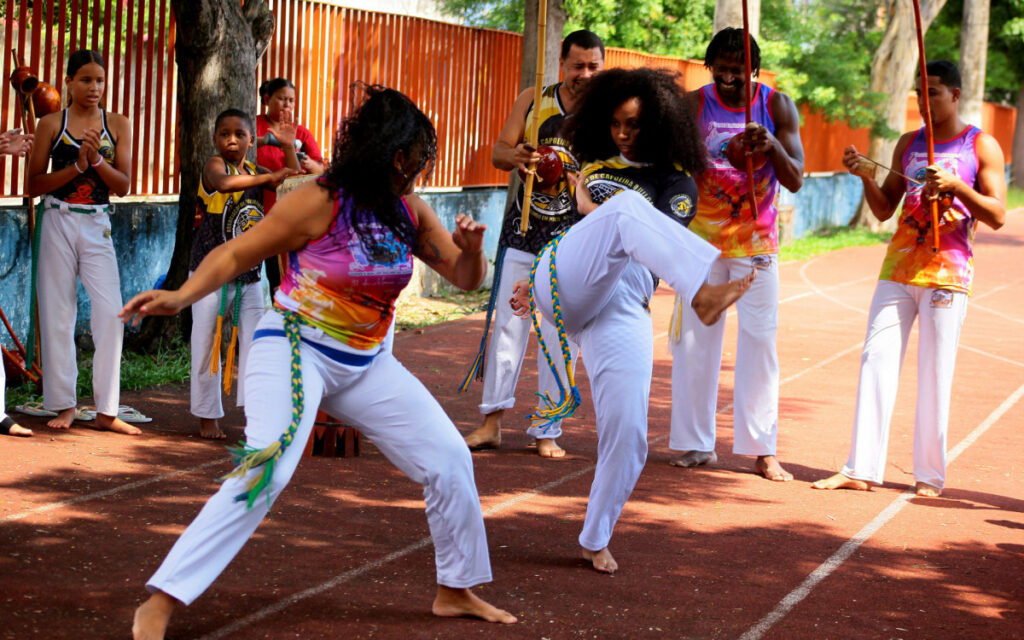 Jaqueline Ferreira da Silva Gaspar, conhecida como Kew, de 38 anos, encontrou na capoeira a base para sua formação em Educação Física e um caminho para a inclusão social. Ela é a fundadora da Associação Cultural, Desportiva e de Capoeira Quilombolizando – Quilombo em Foco, criada em 2019, em Comendador Soares. O projeto se dedica à inclusão de crianças neurodivergentes.
