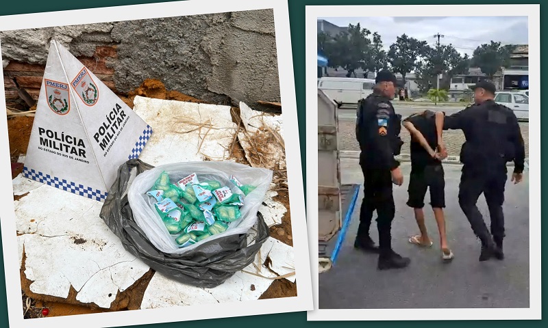 A Polícia Militar prendeu, na tarde desta quinta-feira (4), um homem suspeito de tráfico de drogas na Rua Goiás, no bairro Cidade Praiana, em Rio das Ostras. A ação foi realizada por uma guarnição do GAT da 3ª Companhia, sob o comando do tenente Carvalho, após denúncia de um transeunte.