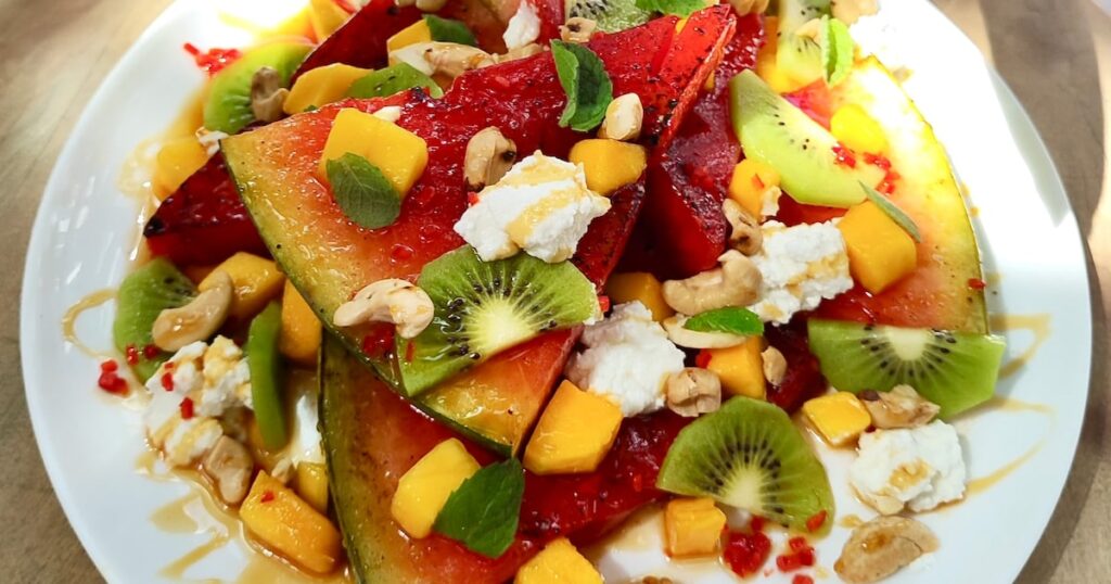 A salada de frutas, um clássico da culinária mundial, ganha uma roupagem sofisticada e inovadora nesta receita que combina sabores, texturas e aromas de forma harmoniosa. Ideal para os dias quentes de verão, essa versão de salada de frutas grelhadas oferece uma experiência gastronômica leve e revigorante. A combinação inusitada de ingredientes frescos, como melancia, kiwi e manga, com o toque especial da grelha, transforma uma sobremesa simples em um prato elegante e saboroso.