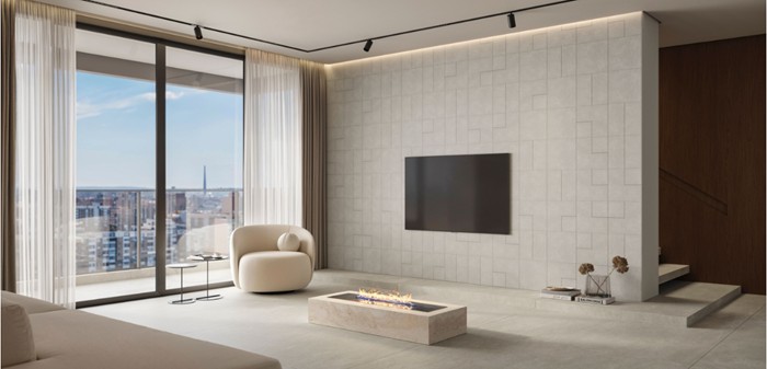 Em contraponto, a incorporação de texturas naturais, como cimentícios e amadeirados, adiciona equilíbrio e aconchego, conectando o design à natureza e ao bem-estar.