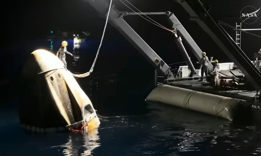Os astronautas Mike Fincke e Zena Cardman, ambos dos Estados Unidos, Oleg Platonov, da Rússia, e Kimiya Yui, do Japão, desacoplaram da EEI às 22h20 (horário de Greenwich) da quarta-feira. O retorno foi acompanhado em tempo real pela NASA, que transmitiu imagens do evento. A cápsula Dragon, da SpaceX, responsável pelo transporte dos astronautas, amerissou no Pacífico às 0h41 (horário local), próximo à costa de San Diego. O porta-voz da NASA, Rob Navias, informou que o tripulante que apresentou o problema de saúde estava em estado estável e recebendo todos os cuidados necessários.